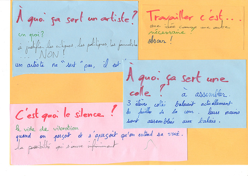 L’aprés midi, on y a installé chaises et tables, pour répondre aussi aux questions qu’on pose. voir nous, petits papiers